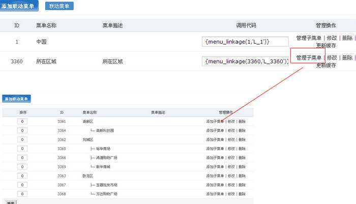 接下來為剛才添加的聯(lián)動菜單,添加菜單數據,如下圖所示: