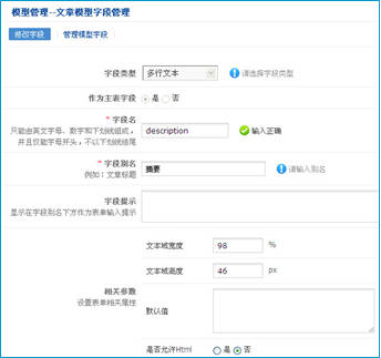 字段管理設置時有一些選項,其中有些是比較重要的設置。現介紹如下: