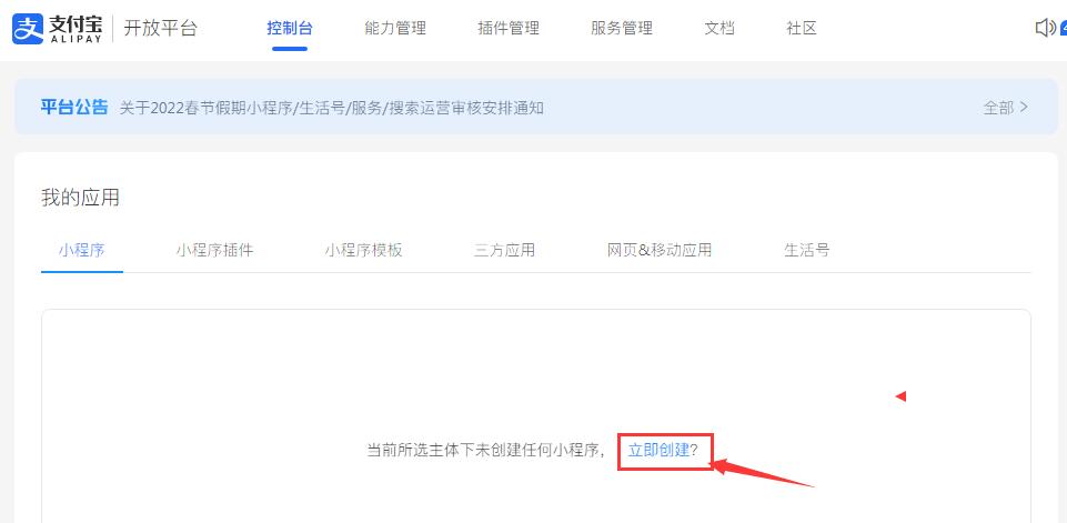 (1)點“立即創(chuàng)建”,創(chuàng)建小程序
