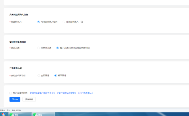 ? 選擇開通其他功能(實時提現(xiàn)免費到賬、支付寶收錢功能)。